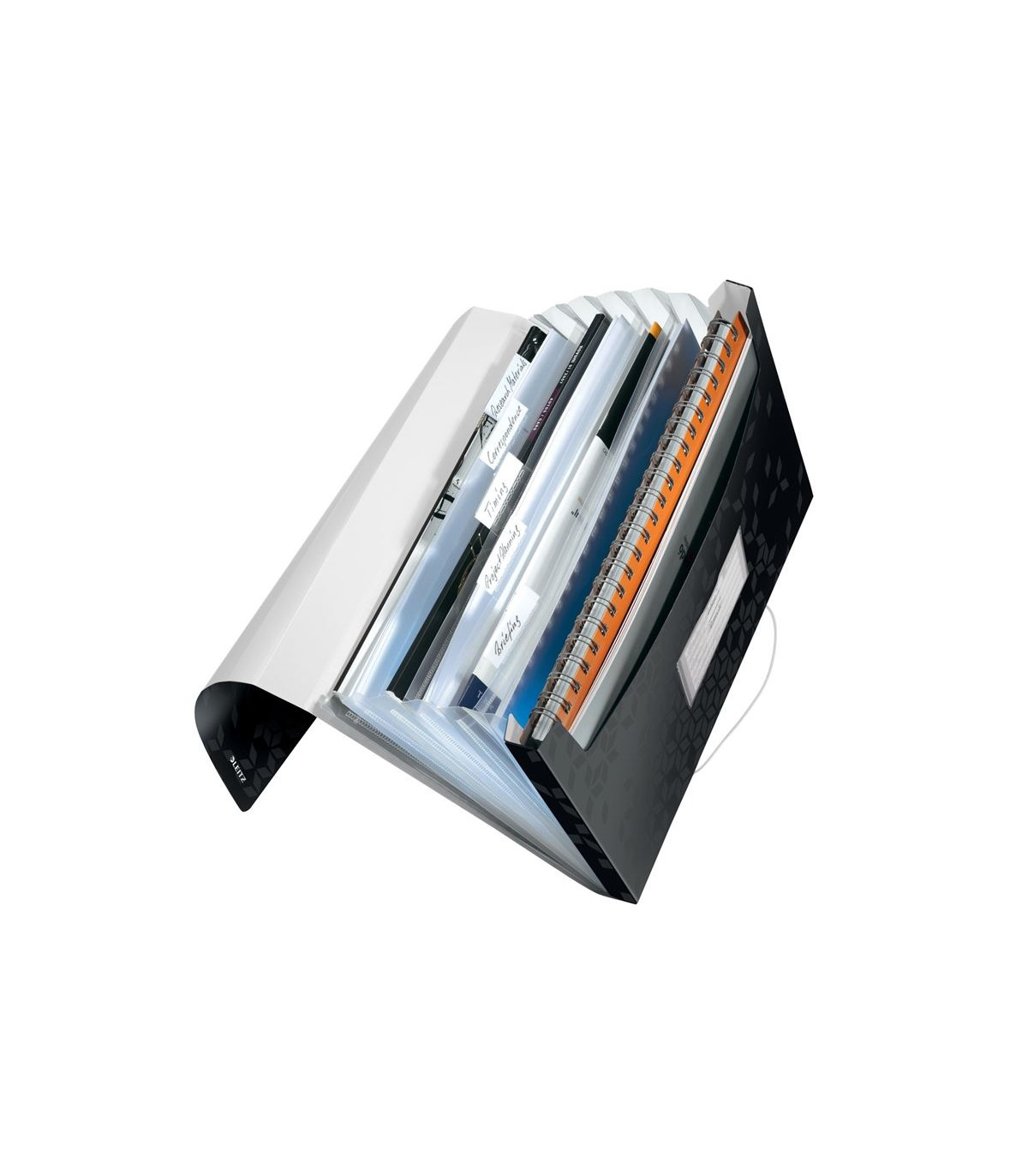 Aktovka s přihrádkami Leitz WOW pro organizaci dokumentů, Formát A4, Barva metalicky černá, 6 přihrádek, Šíře hřbetu 3,8 cm, Cena za ks