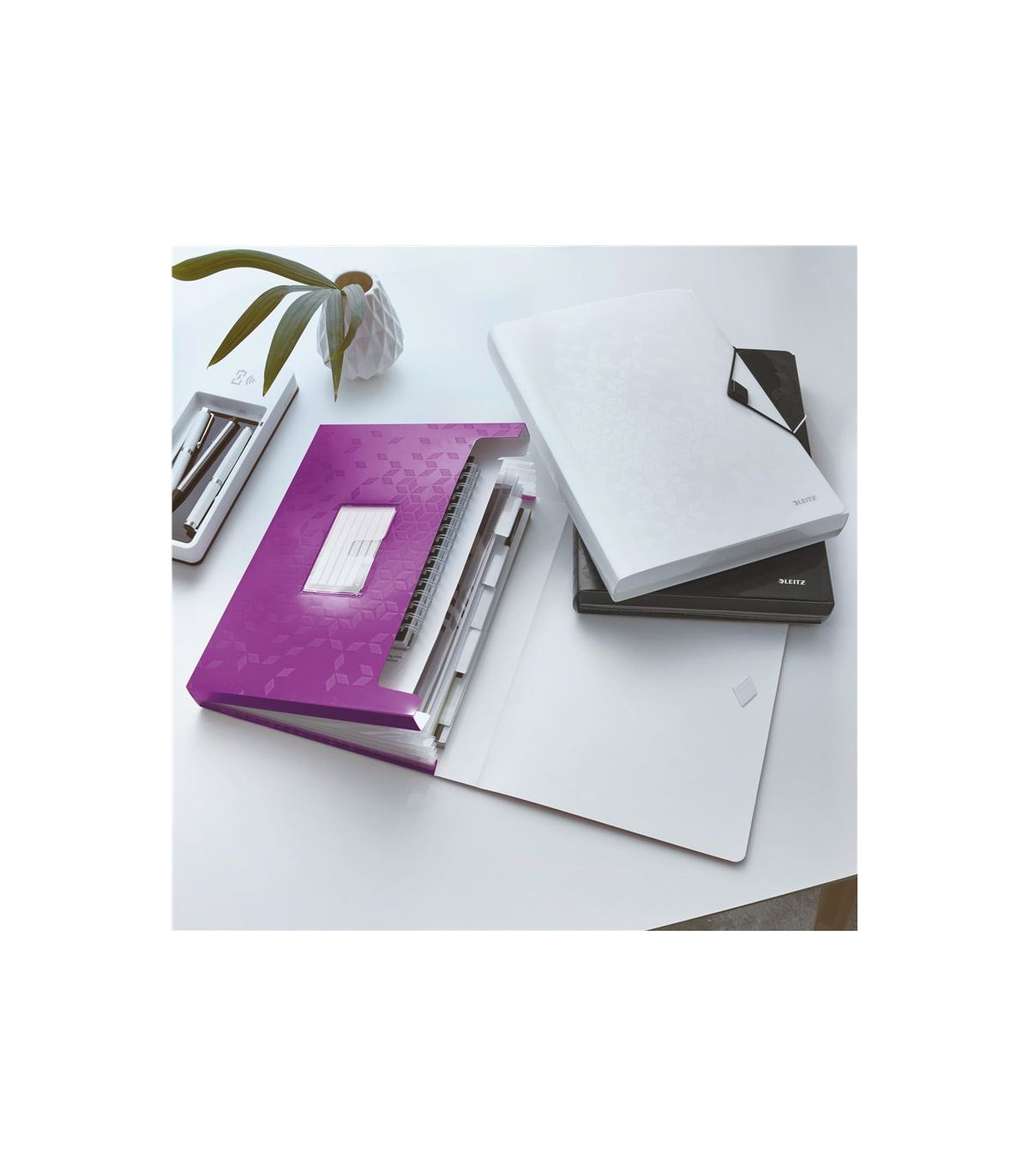 Aktovka s přihrádkami Leitz WOW pro organizaci dokumentů, Formát A4, Barva metalicky fialová, 6 přihrádek, Šíře hřbetu 3,8 cm, Cena za ks