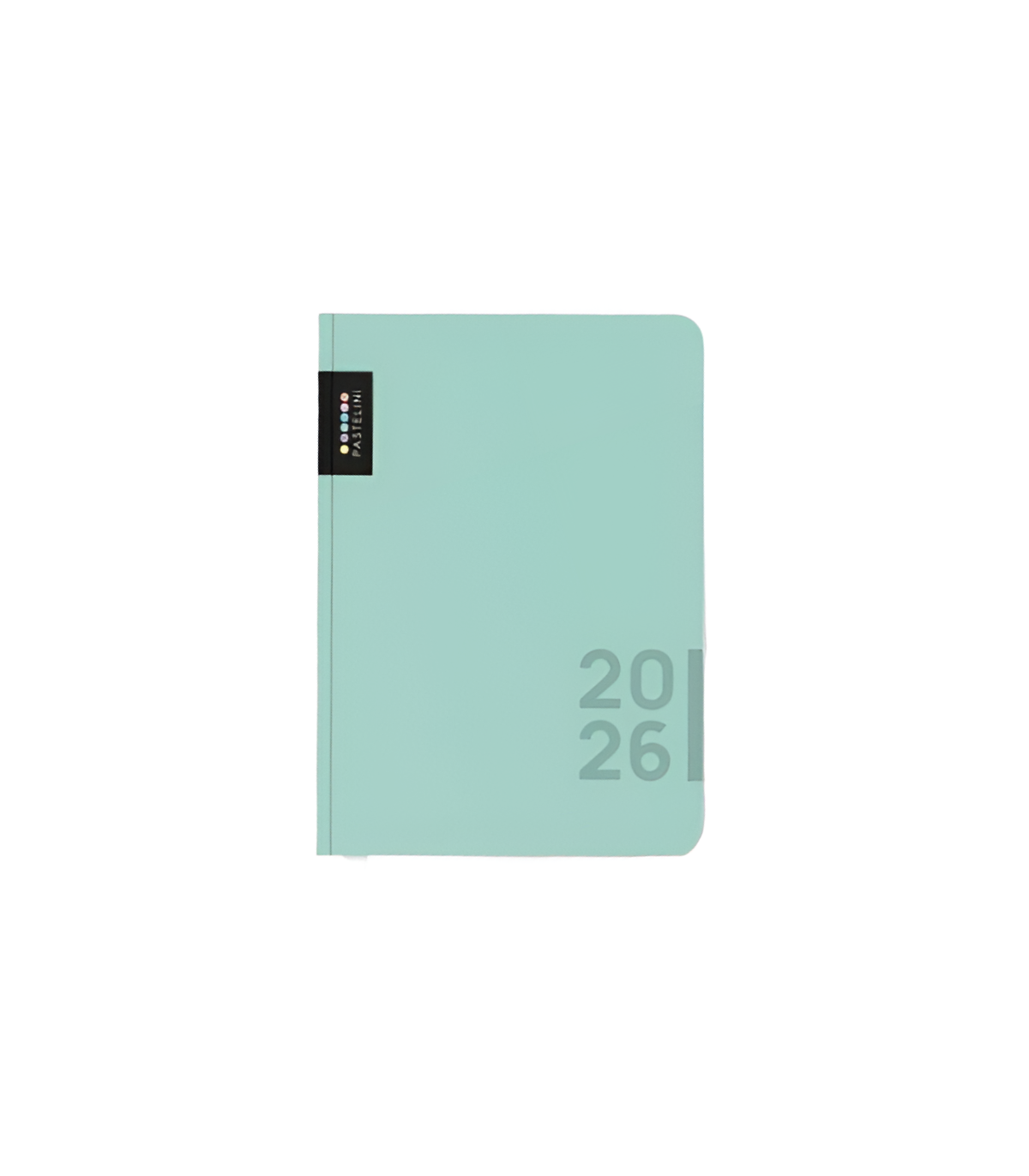 Diář týdenní Pastelini A5 - zelený 2026, Formát A5, Rozměr 155 x 207 x 12 mm, Kalendárium obsahuje: cz/sk jména, cz/sk státní svátky, dny a měsíce v 5 jazycích (CZ, SK, DE, ENG, RUS), Cena za ks