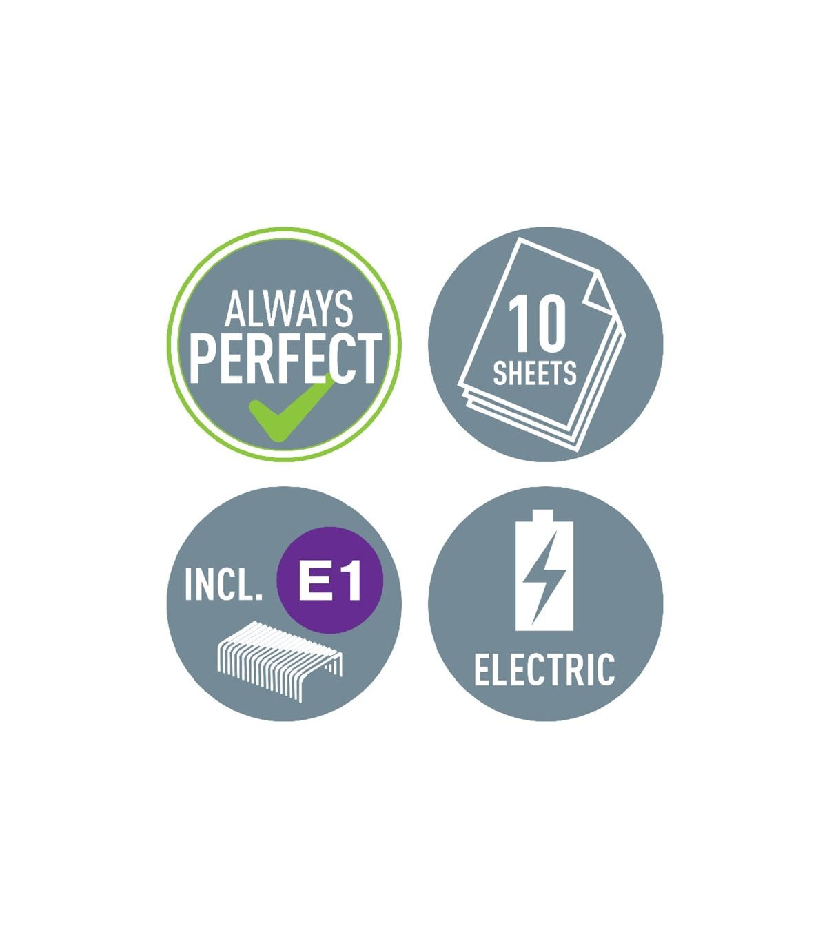 Elektrická sešívačka Leitz NeXXt 5566, Barva bílá, Najednou sešije 10 listů, Napájení 4x AAA baterie, Materiál kov/plast, Spojovací drátky e1, Cena za ks