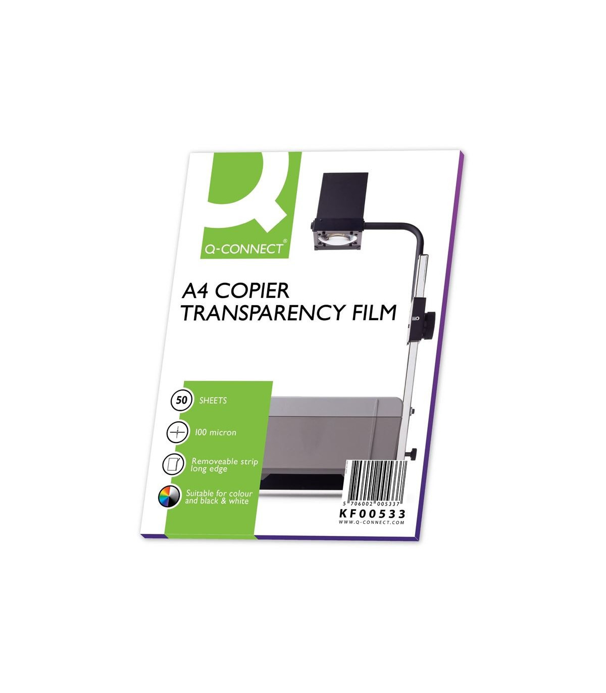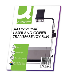 Fólie pro zpětnou projekci Q-Connect, Formát A4, Tloušťka 100 mic, V balení 50 ks, Použití v laserové tiskárně, barevný nebo černobílý tisk, Cena za balení