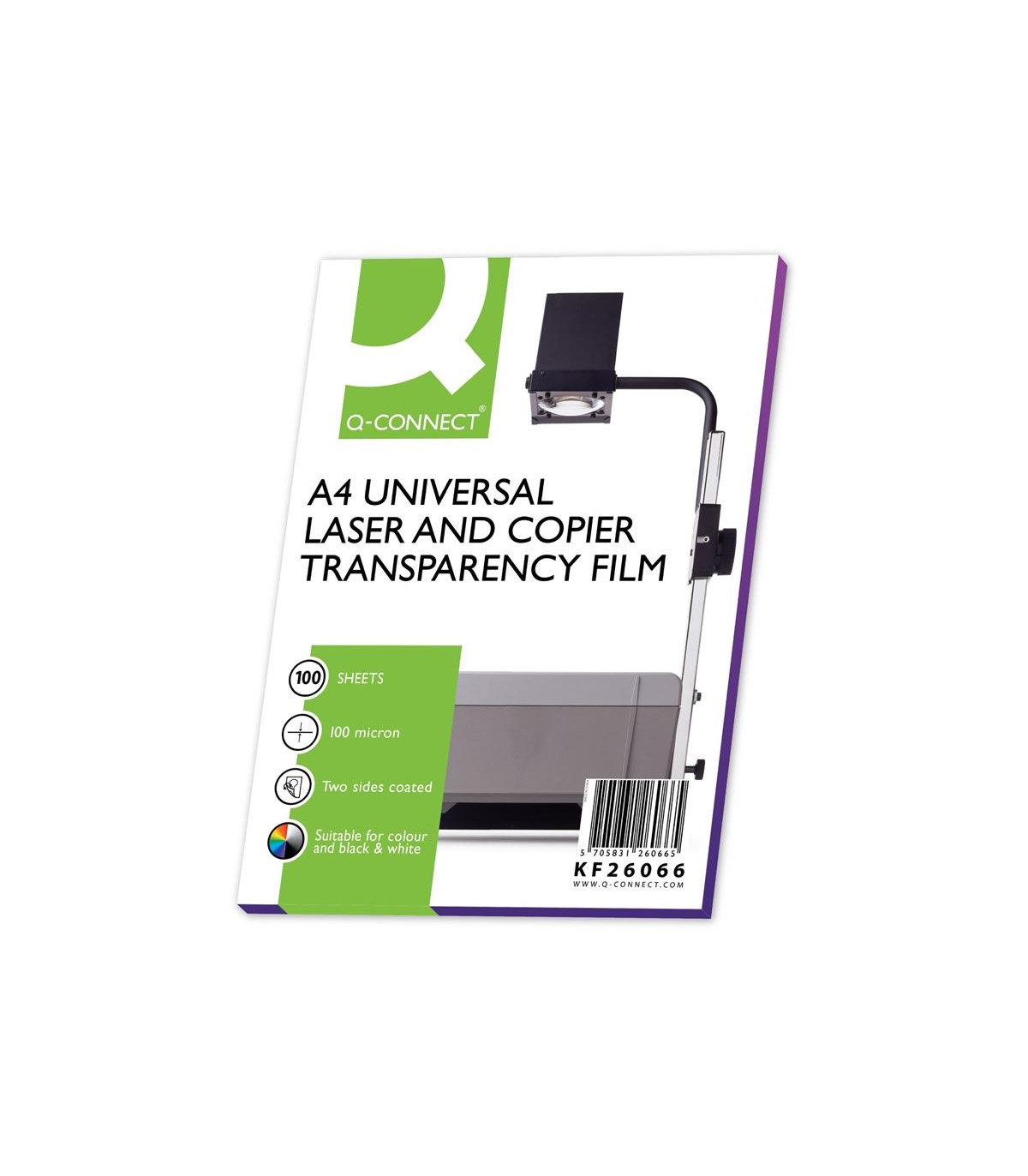 Fólie pro zpětnou projekci Q-Connect (KF26066), Formát A4, Tloušťka 100 mic, V balení 100 ks, Použití v laserové tiskárně, kopírce, Barevný nebo černobílý tisk, Cena za balení