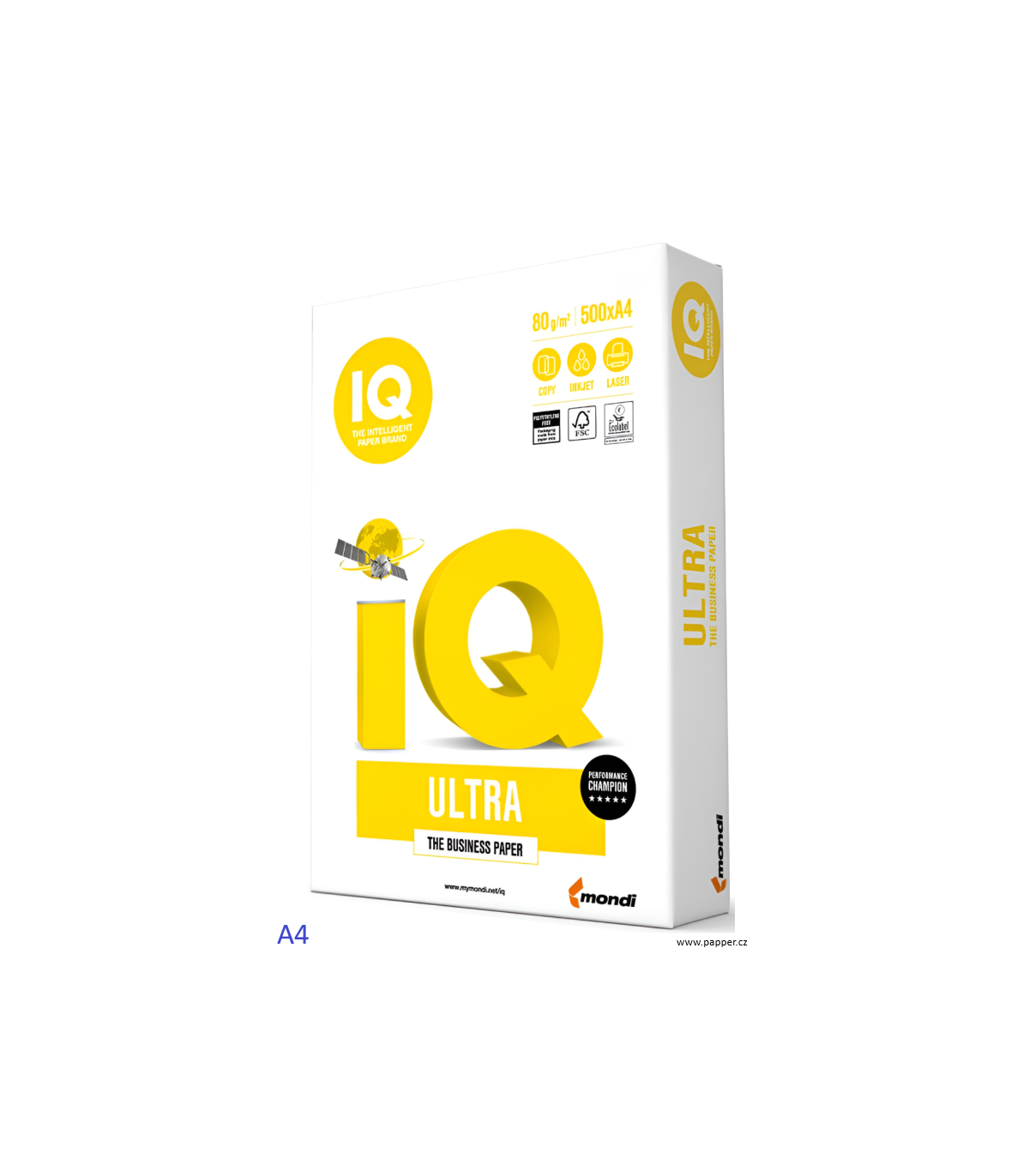 Kancelářský papír IQ Ultra, Formát A4, Gramáž 80 g/m2, Bělost CIE 170, Vhodný pro jednostranný i oboustranný tisk, inkoustové a laserové tiskárny a kopírky, V balení 500 listů, Cena za balení