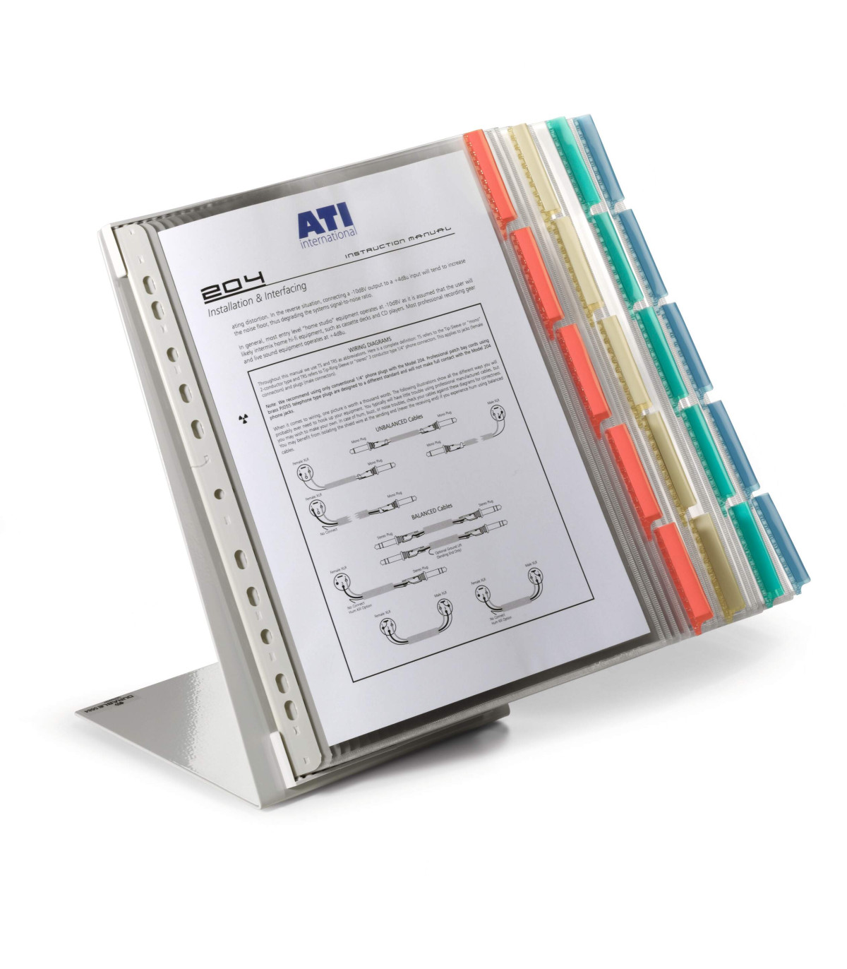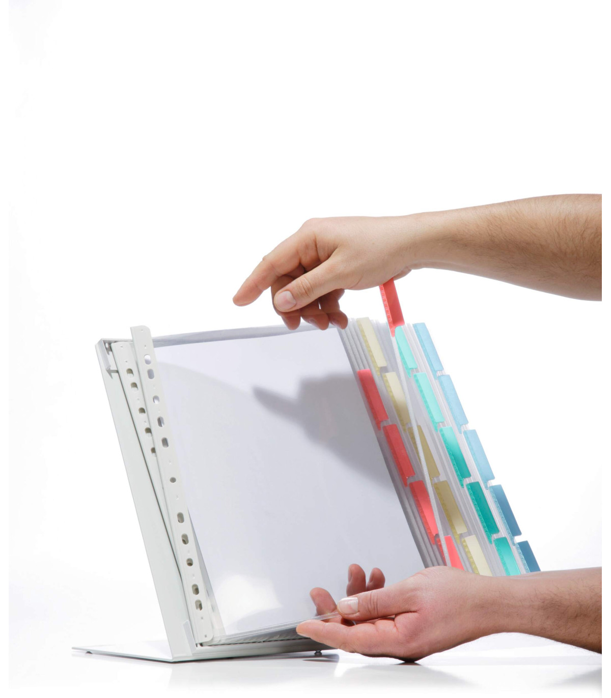 - Z průzračné tvrzené antireflexní fólie (umožňuje skenování), s rozlišovacími barevnými štítky 60 mm, které dělí tabule na 5/5, barevným okrajem a popisovacími štítky a eurozávěsem