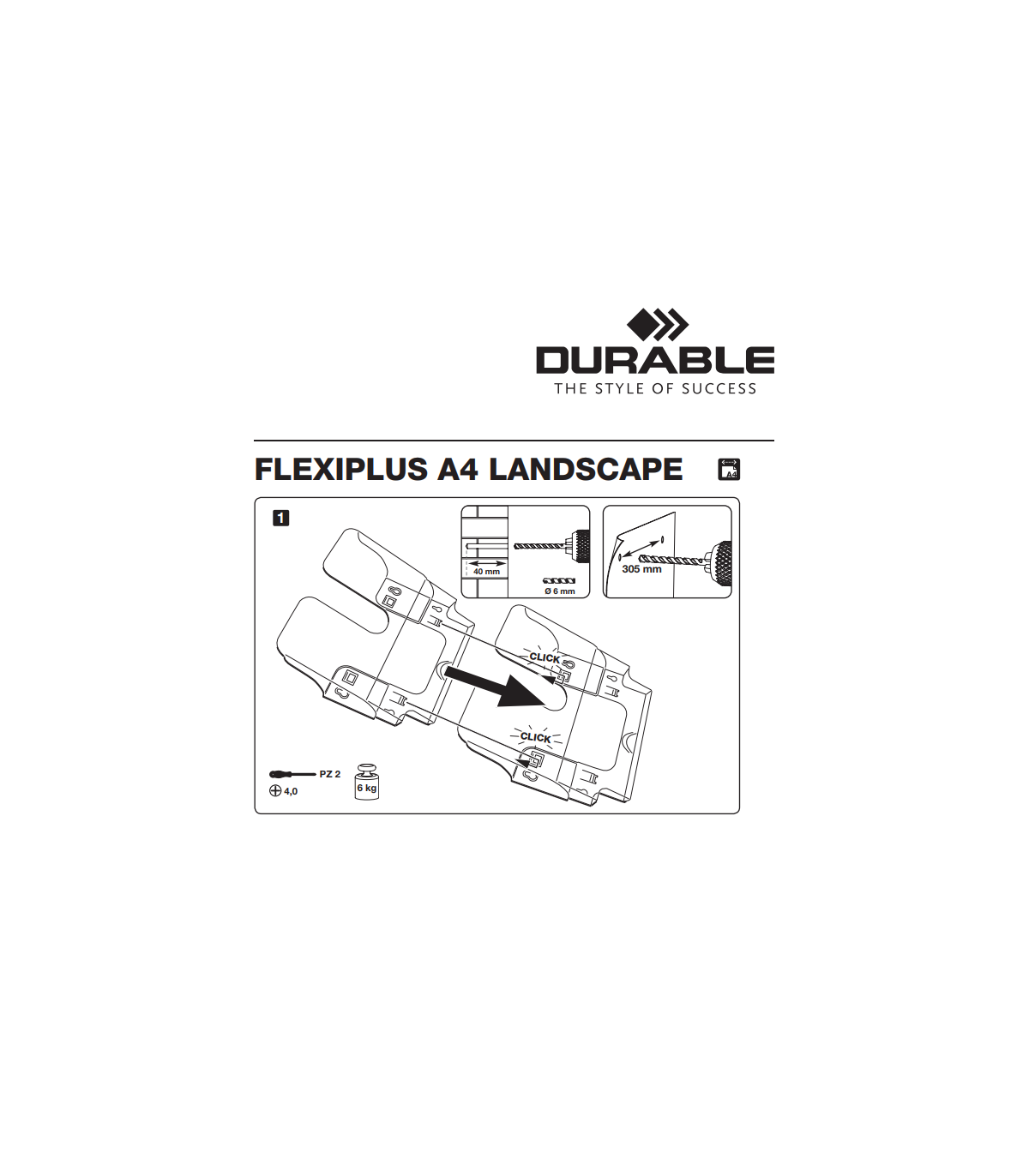 Prezentační nástěnný stojan Durable FLEXIPLUS, Počet přihrádek 6, Formát A4 na šířku, Barva transparentní, Materiál plast, Cena za ks