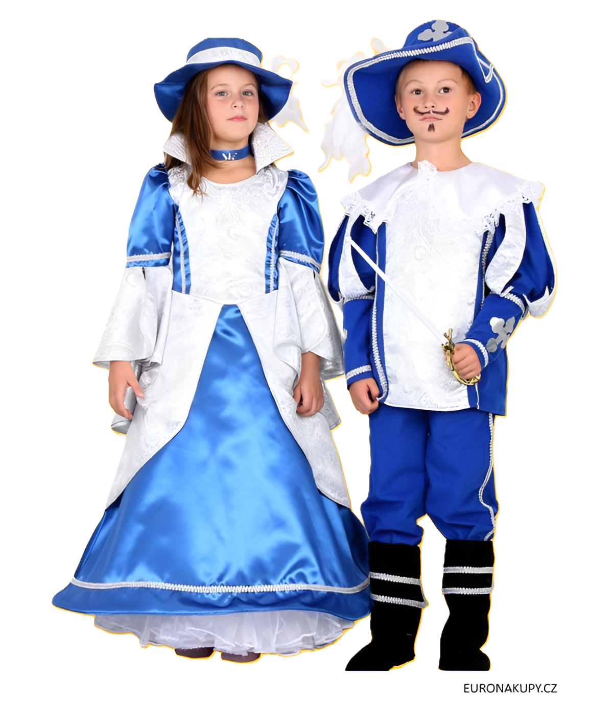 - Karnevalový kostým MUŠKETÝR MODRÝ, kalhoty, horní díl, klobouk, návleky