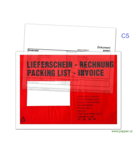 Kapsy na zásilky DL (průvodky) - samolepicí, průhledné s červenou, 250 ks