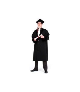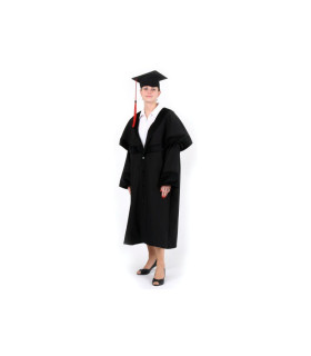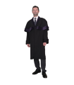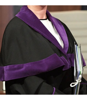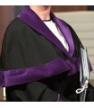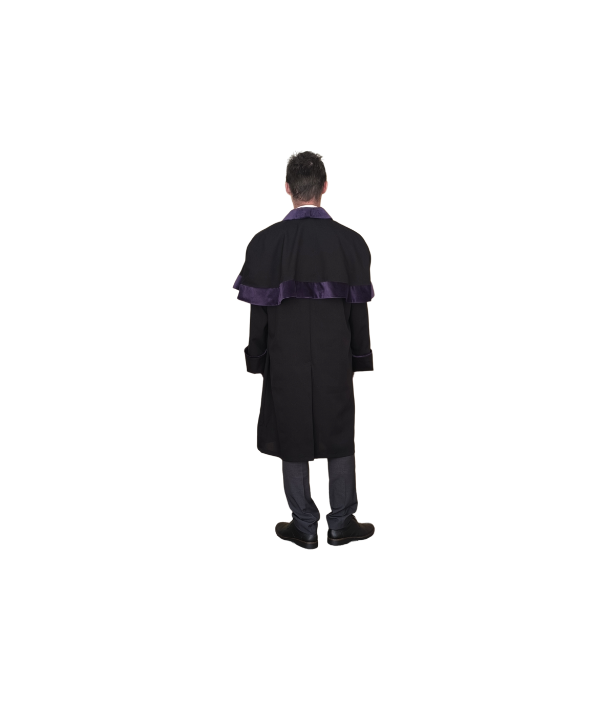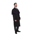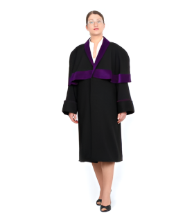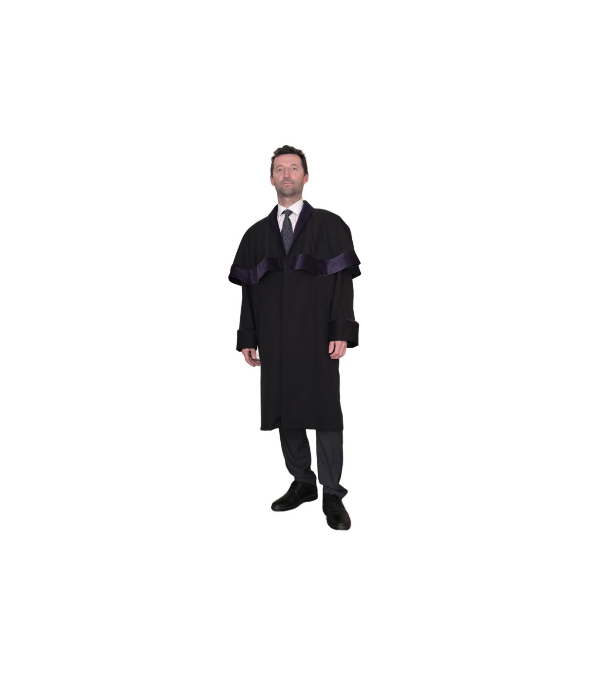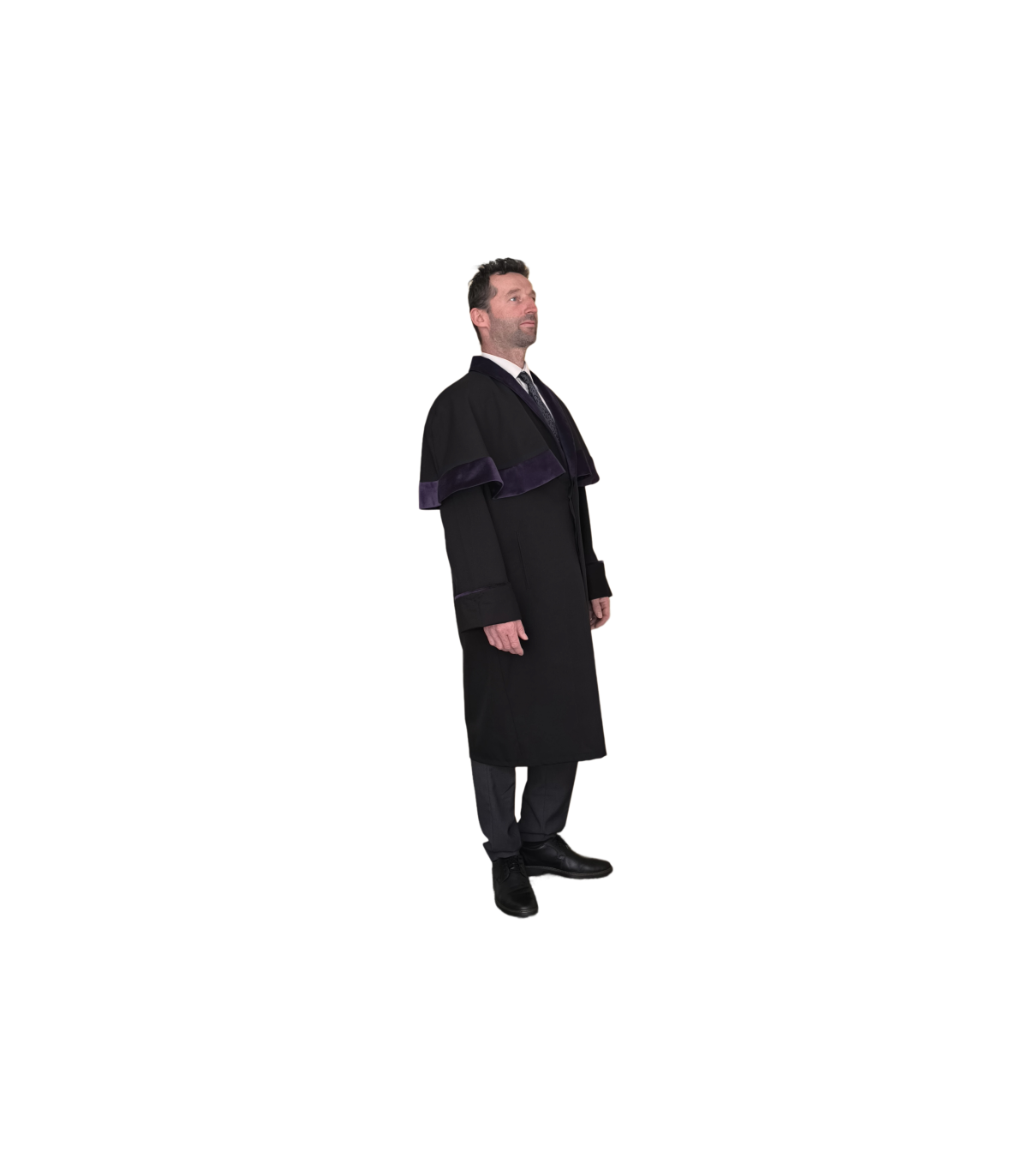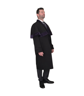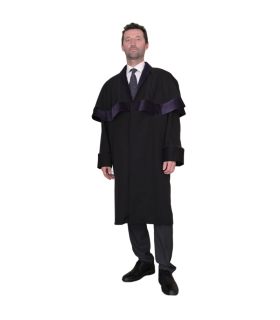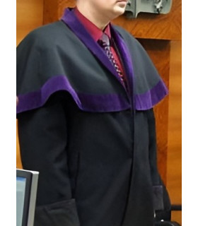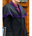 • Barva: Talár je černý s elegantním lemováním ve fialové barvě, což podtrhuje jeho profesionální vzhled.