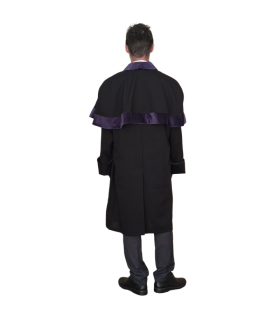 Kombinace černé barvy s fialovým lemováním vytváří důstojný a autoritativní vzhled.