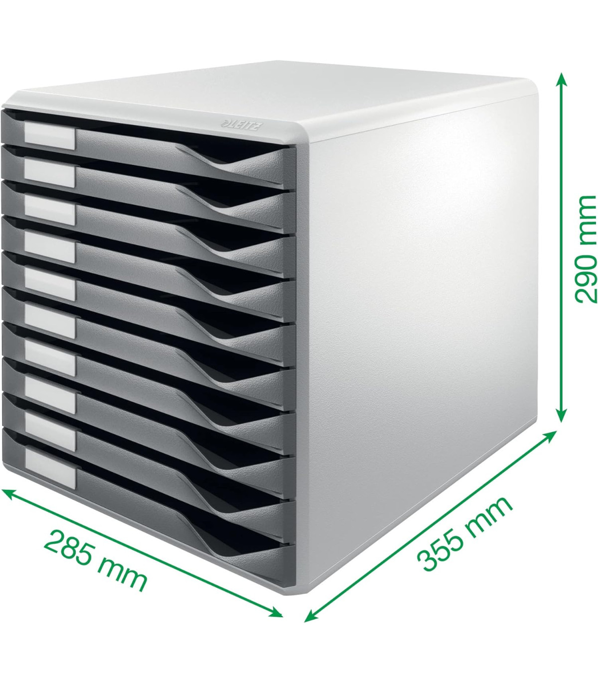 Zásuvkový box Leitz - 10 zásuvek, modrý/šedý, Rozměry: 29,2 × 29,1 × 35,2 cm (š × v × h)
