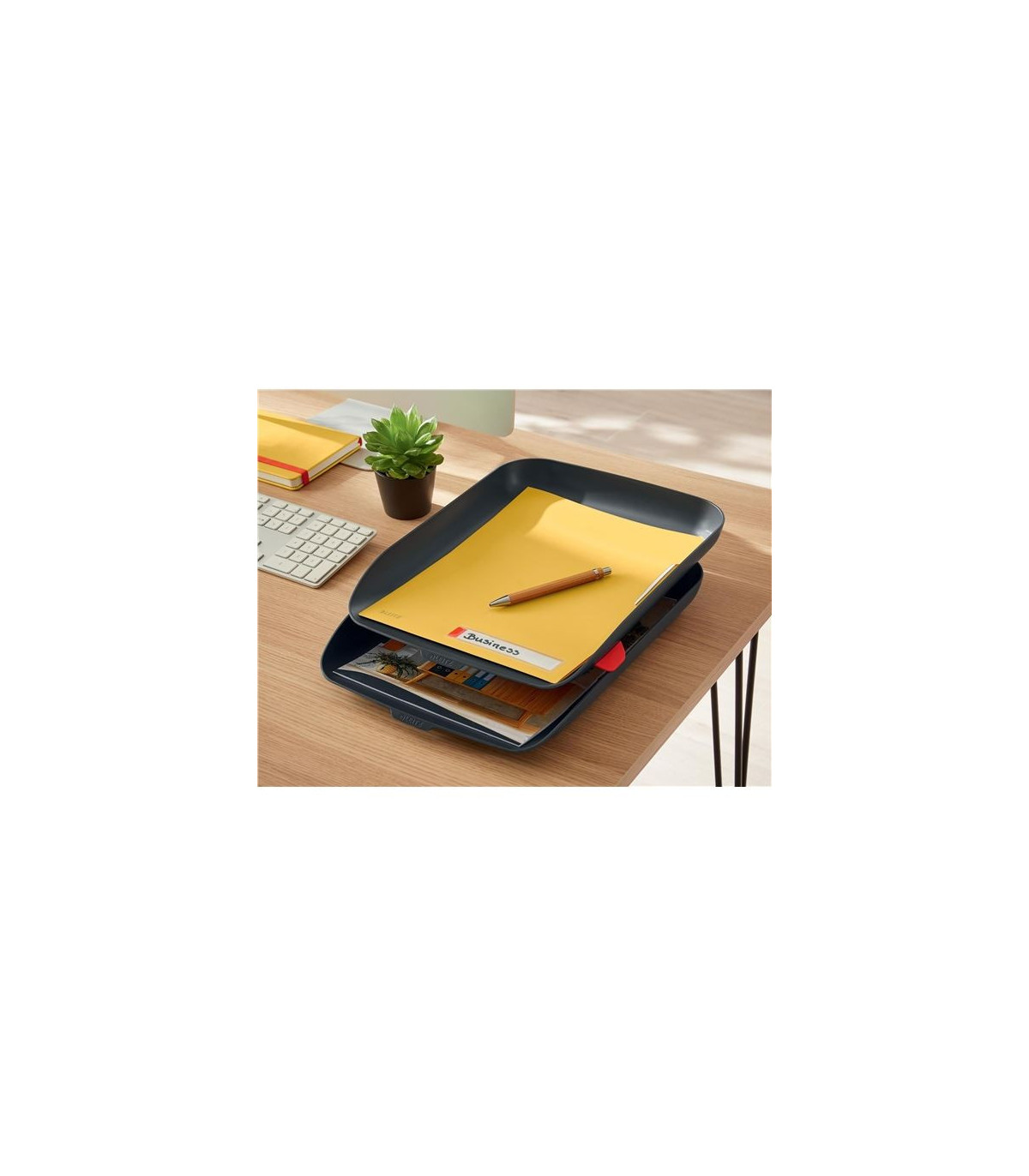 - Pevný plast a velké přední otevření zajišťuje snadný přístup k dokumentům, i když jsou odkladače stohované nad sebou, dotváří minimalistické pojetí kanceláře